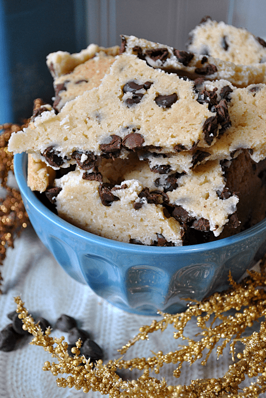 Chocolate Chip Cookie Brittle Recipe posted by Something Swanky Pin Share Tweet Email Jump to Recipe SomethingSwanky is reader-supported. When you buy through links on our site, we may earn an affiliate commission at no extra cost to you. Today my daughter swiped my cardigan off the back of a chair. She blew her nose in it, and then proceeded it to drape it over her shoulders like a shawl. All within a matter of seconds. I chased after her, shouting (lovingly, of course) “Hey! That’s Mommy’s! Give it Back!” and “Oh, ewwwwww! Emma! Don’t do that to Mommy’s shirt!” In between fits of giggles, she said “I’m the Mommy! I’m the Mommy!” over and over again as she ran around the ottoman. Those of you who have been reading my posts for a while know that Emma has a speech delay. It’s nothing insurmountable, but it’s been frustrating, definitely. One thing I can tell you for sure about having a child with a speech delay: you appreciate all of those silly little things they manage to say to you. Even if it’s something as simple as, “I’m the Mommy!” Oftentimes, I feel like she’s checked out, left the building, and I can’t seem to find her. And I miss her terribly. But not today. Today, I knew she was there, and she was talking to me. I felt so lucky. And the snot on my cardigan was totally worth it. Have you ever tried Cookie Brittle? This was a first for me, and it was unreal. Who would have thought there was another way to make a chocolate chip cookie?? It’s buttery and crunchy, like a traditional brittle. But it tastes like a cookie. Which makes it way better… Recipe Source: Lion House Cookies & Sweet Cookbook Continue to Content Cookie Brittle Print Ingredients 1 cup butter, softened 1 1/2 tsp vanilla 1/2 tsp salt 1 cup granulated sugar 2 cups all purpose flour 1 cup semi-sweet chocolate chips Instructions Preheat oven to 375 degrees. Cream the butter, vanilla, and salt in a large stand mixer bowl. Gradually beat in the sugar. Add the flour and chocolate chips. Mix well (mixture may be crumbly at first, but continue to mix and it will form a dough). Press evenly into a 10x15 inch ungreased jelly roll pan. Bake for 25-30 minutes, until golden brown. Once cooled, break into irregular pieces and serve. Notes about this recipe: Don’t be afraid to over bake a little. Crispy is GOOD!