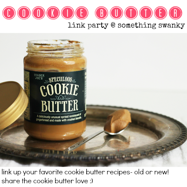 Cookie Butter Link Party posted by Something Swanky Pin Share Tweet Email SomethingSwanky is reader-supported. When you buy through links on our site, we may earn an affiliate commission at no extra cost to you. I know this is totally random. And, no, it’s not replacing my regular Thursday Sweet Treats and Swanky Stuff Link Party (so come back tomorrow for that 🙂 But I just got to thinking, as I whipped up last week’s batch of Oreo Butter Cookies, that it would be so much fun to put together a collection of all of our favorite cookie butter recipes! I’ve seen you guys come up with some crazy good looking cookie butter goodies! So link ’em up! I’ll go around and pin them all to help spread the cookie butter love 🙂 Link up as many recipes are you’ve got!!!