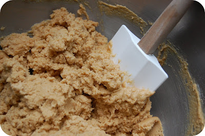 1. Cream peanut butter, shortening, and sugars. Add remaining ingredients and mix together.