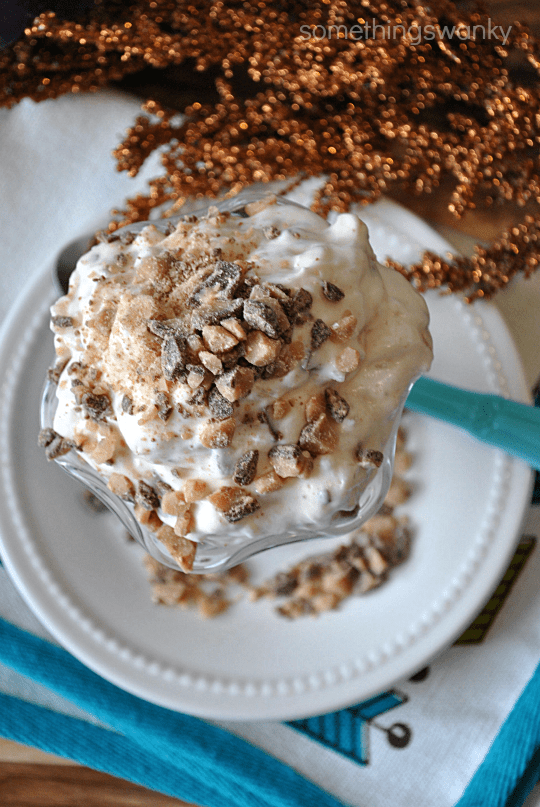 Salted Caramel & Toffee Cheesecake Rice Pudding Recipe posted by Something Swanky Pin Share Tweet Email Jump to Recipe SomethingSwanky is reader-supported. When you buy through links on our site, we may earn an affiliate commission at no extra cost to you. So tell me… who is back to work already?? I’m hoping that NONE of you are! But I think I vaguely remember from my Enterprise days going back to work on January 2. It just depends on what line of work you’re in, huh? Customer Service folks– you’re back to the grind already, right? No rest for you! (Seriously, I empathize… never put me back in CS again!! Bleh!) Can I tell you what the secret to happiness in a career is? Quit your day job and start a dessert blog. I’m not even kidding around here. Set your own hours. Feel guilty when you’re NOT spending time on Facebook. Every day is cake-at-the-office day. I’m telling you, just do it! I mean… minus having the Dinosaur Train theme song stuck in my head all day, the thick coating of powdered sugar that has settled over my kitchen, and carrying an extra 15 lbs of chocolate chips around my waist…. …this is the life ๐ Continue to Content Salted Caramel & Toffee Rice Pudding Print Ingredients 1 - 3.4 oz package instant Jell-O pudding mix, cheesecake flavor 3/4 cup low fat milk 1/2 cup Smuckers caramel sundae sauce 1 - 8 oz Cool Whip 1 cup cooked white rice, chilled 1 1/2 tso sea salt 1 cup Heath Chocolate and Toffee Bits (not Bit O' Brickle) + extra for garnishing Instructions Whisk together the pudding mix, milk, and caramel sundae sauce until smooth and thick. Whisk in the cool whip, switching to a rubber spatula in order to completely fold in all of the cool whip. Mix in the sea salt, white rice, and heath bits. Use a spatula to break up any clumps of rice. Divide evenly into 6 serving dishes and garnish generously with more Heath Bits.