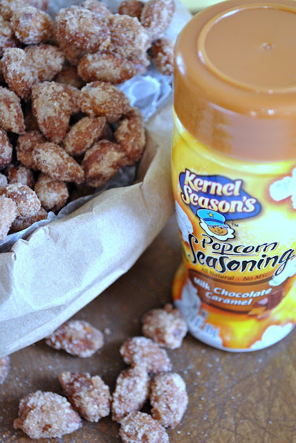 I simply substituted the popcorn seasoning for the cinnamon in a cinnamon sugared almonds recipe, and it worked beautifully. I used Milk Chocolate Caramel, but they offer lots of different sweet flavors (like caramel, apple cinnamon, and chocolate marshmallow), and I imagine all of them would work just as well.